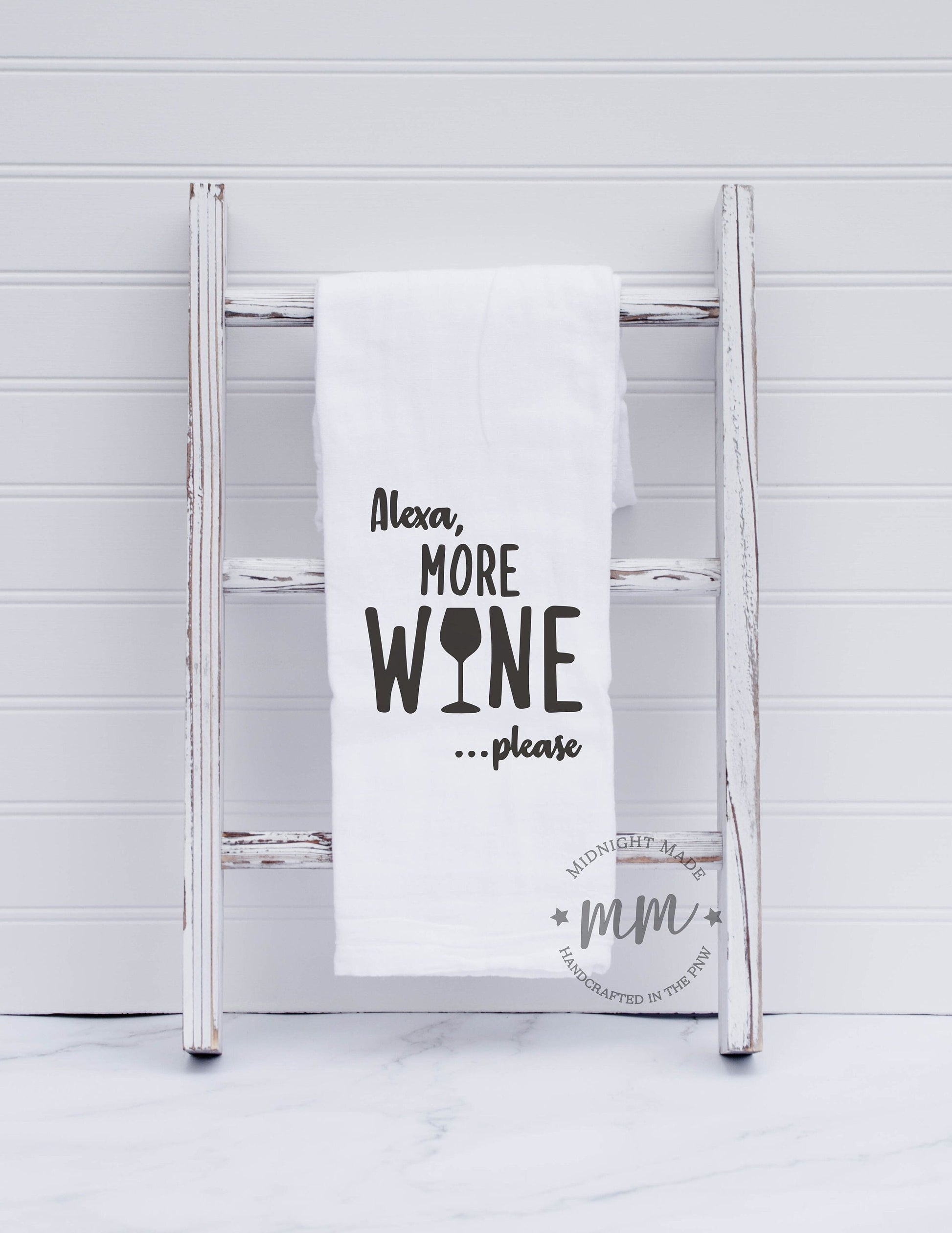Alexa more wine, Alexa towel, kitchen towel, funny towel, novelty towel Midnight Made