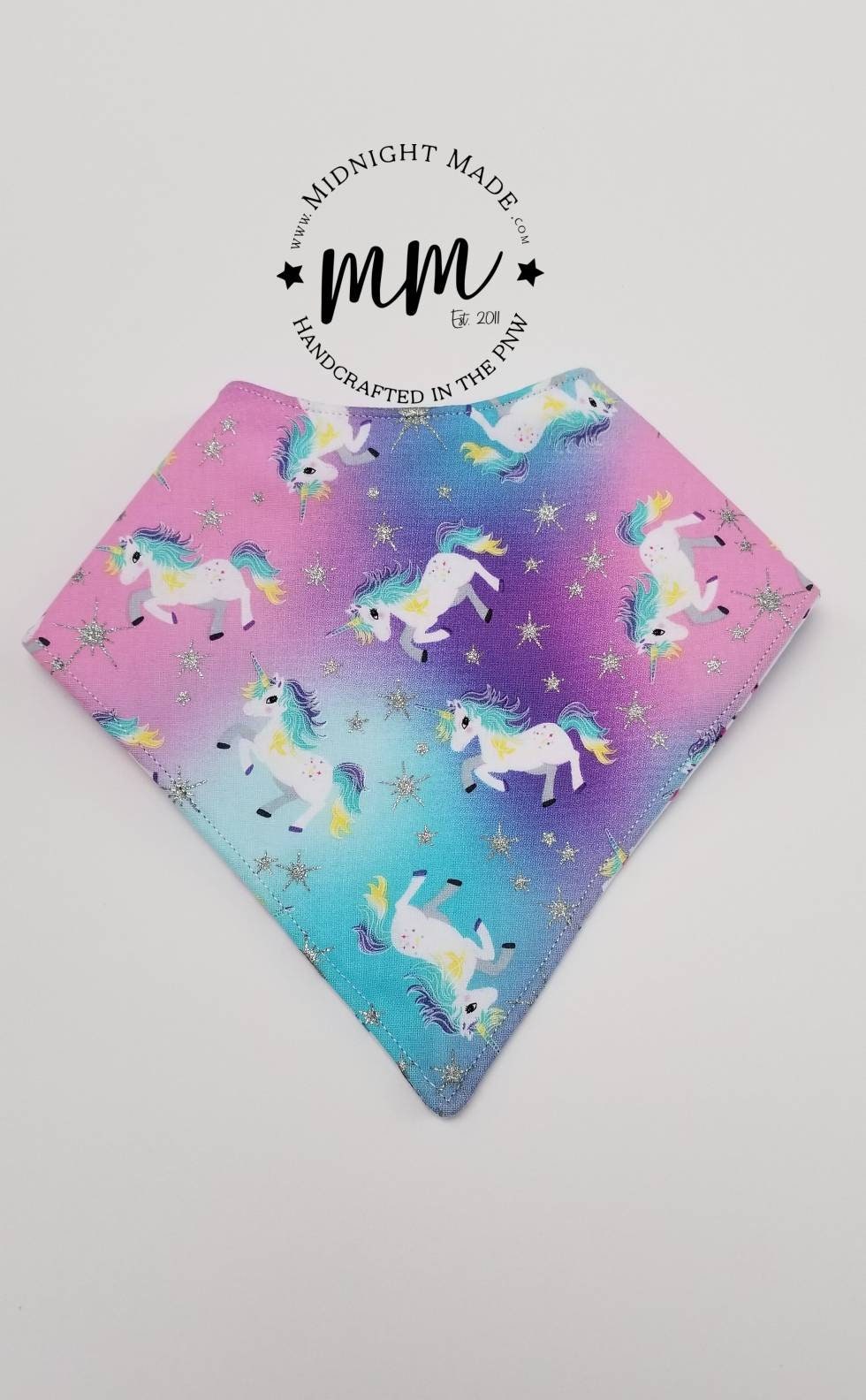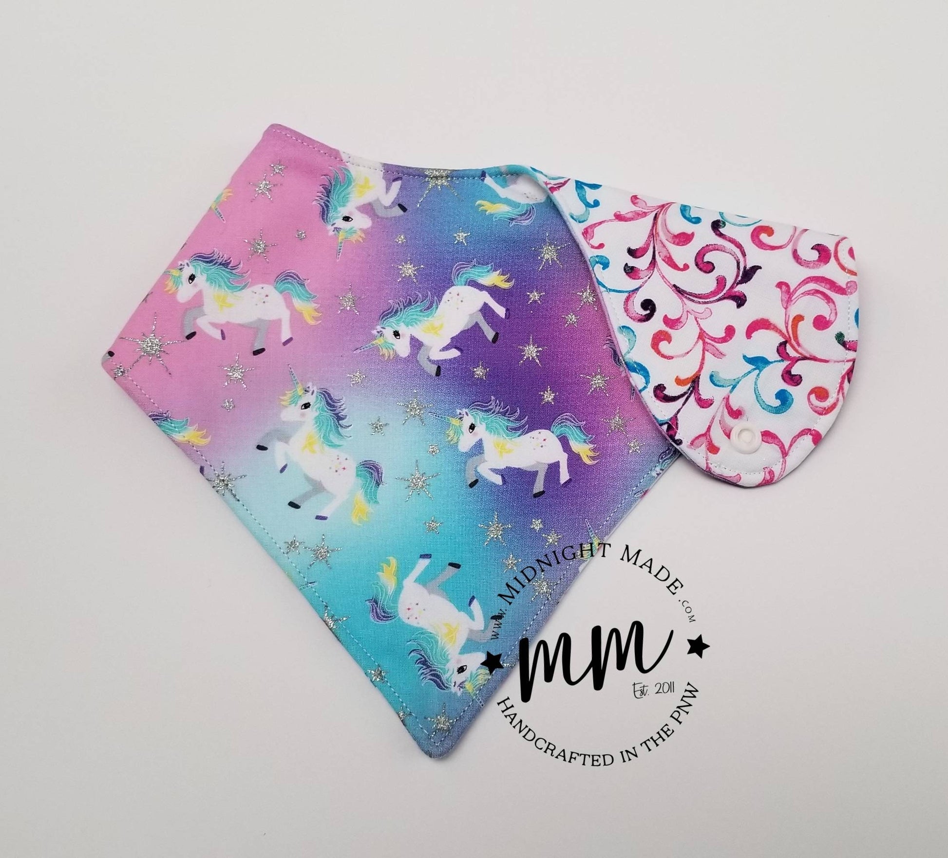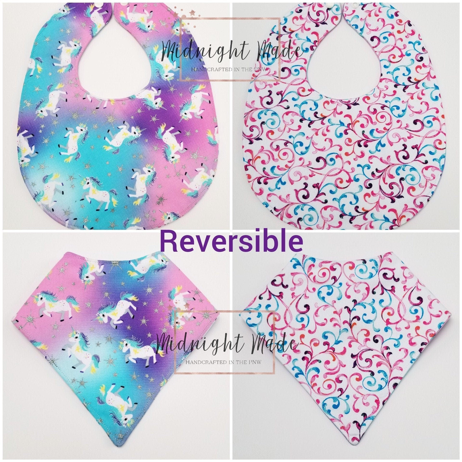 Double sided REVERSIBLE baby bib bandana bib rainbow unicorn stars toddler children's Bib Midnight Made