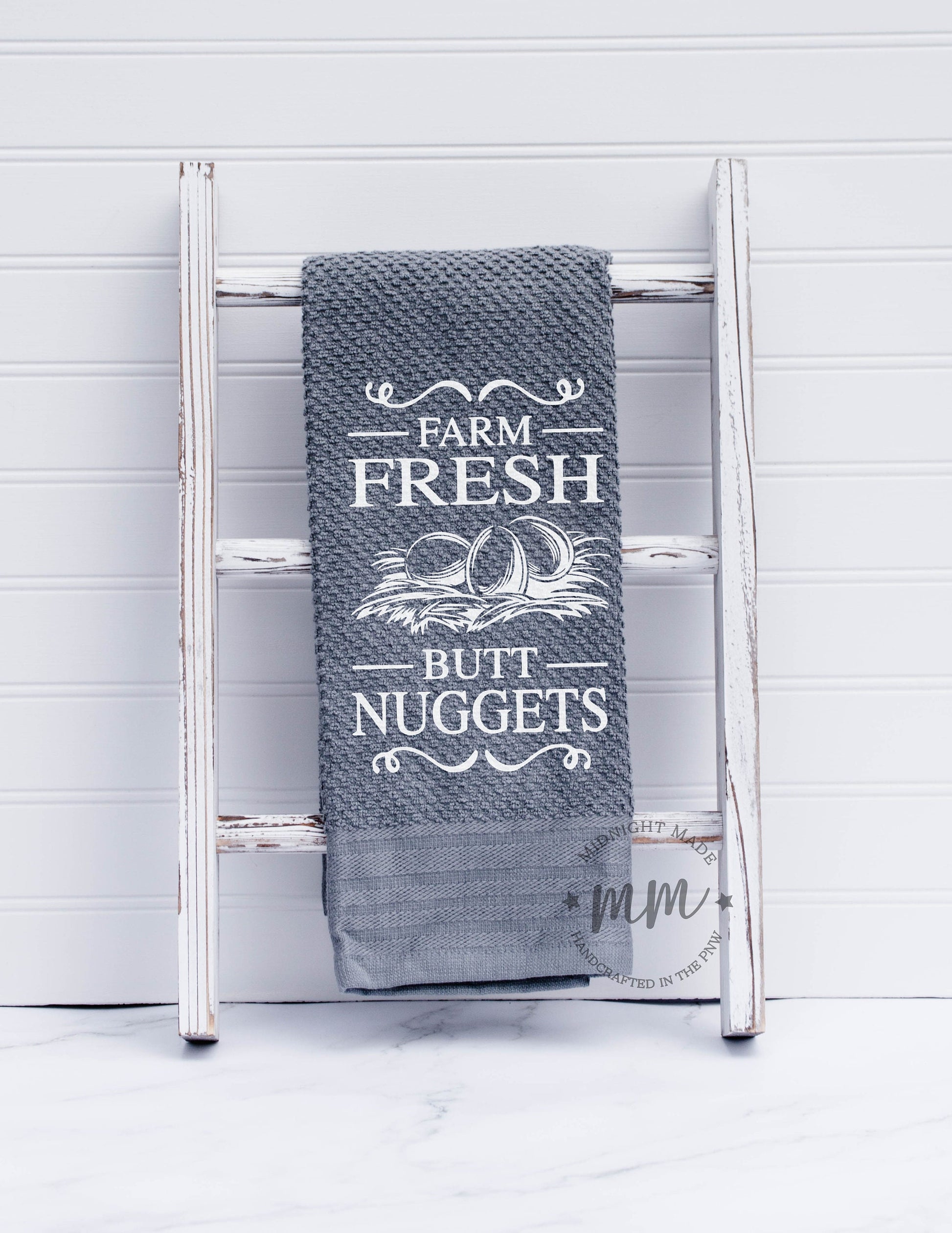 Farm fresh butt nuggets, chicken egg towel, kitchen towel, funny novelty farmhouse gift towel, chicken decor towel Midnight Made