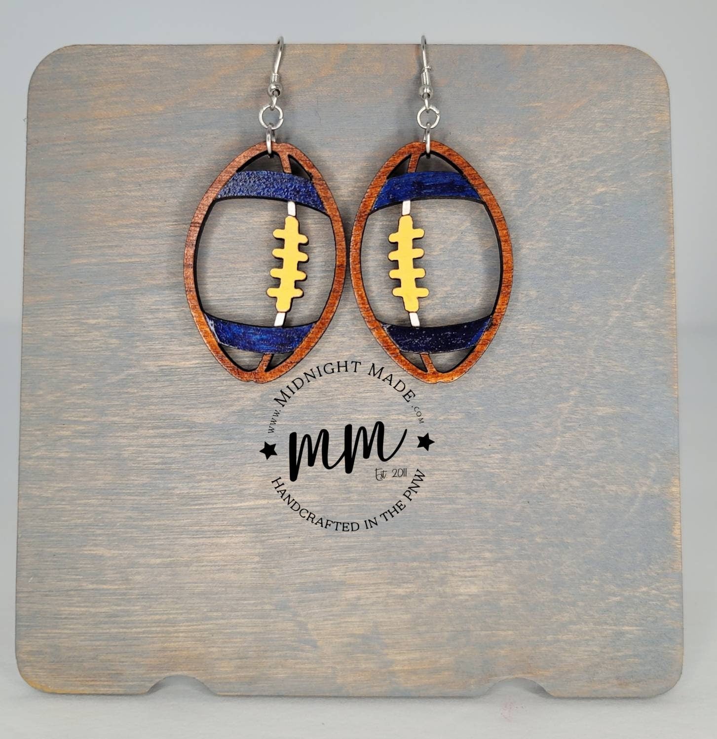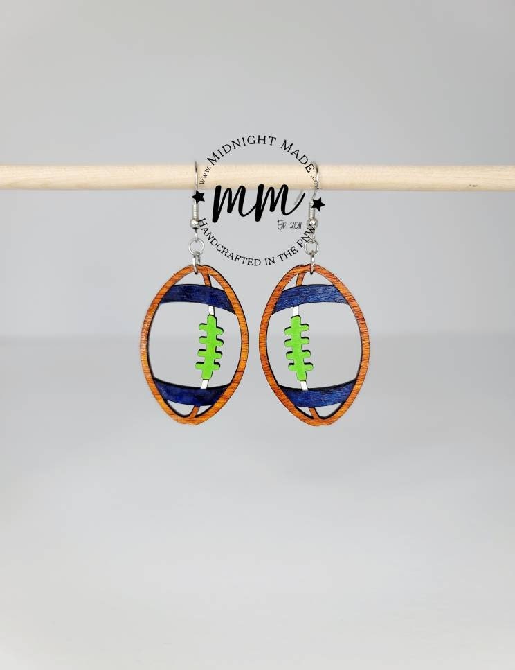 Football wood earrings NFL Midnight Made light weight seahawk earrings Seattle