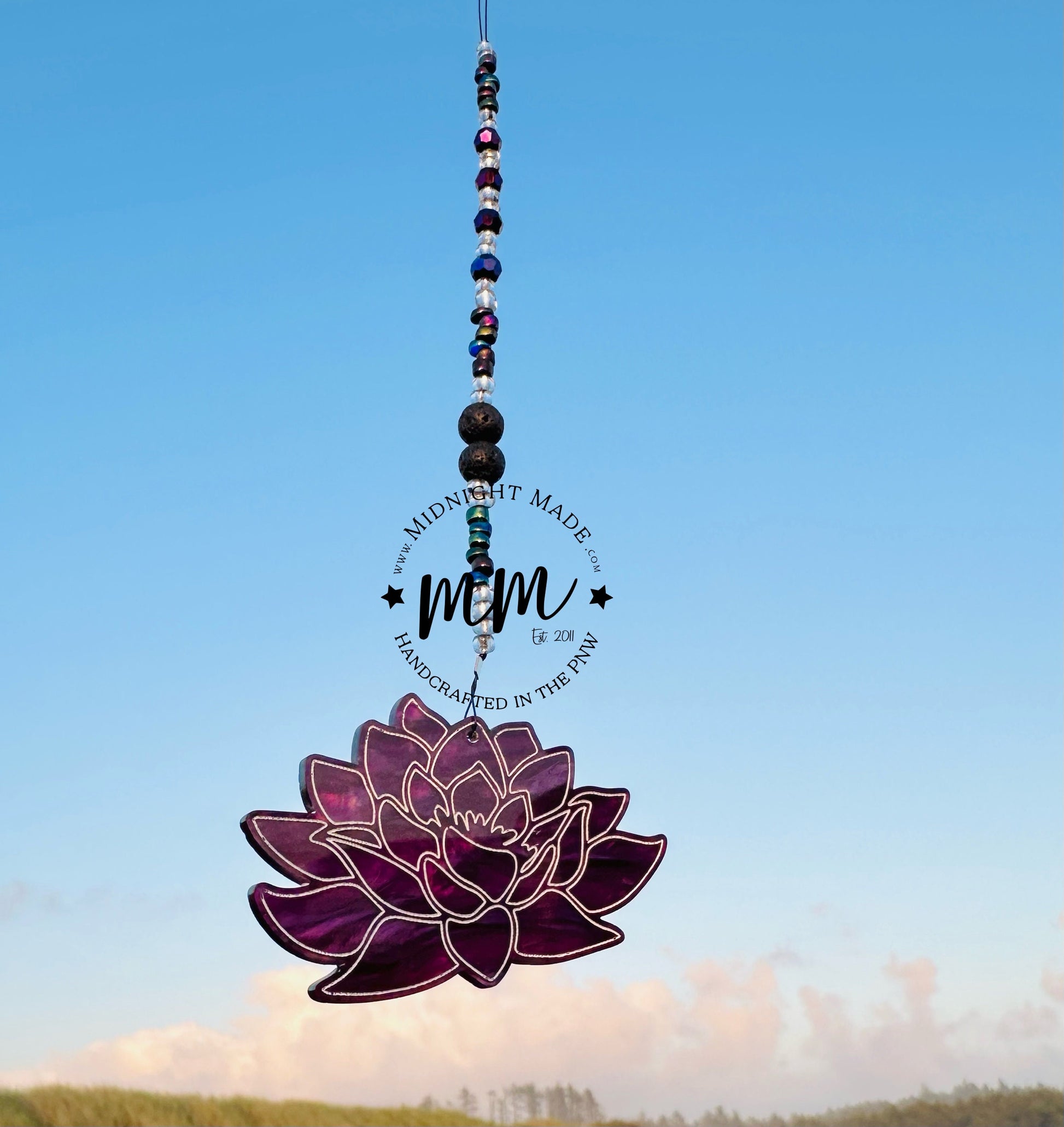 Lotus Flower Car Charm diffuser. Spiritual gift air freshener, essential oil car scents. Strength, resilience, purity, rebirth.