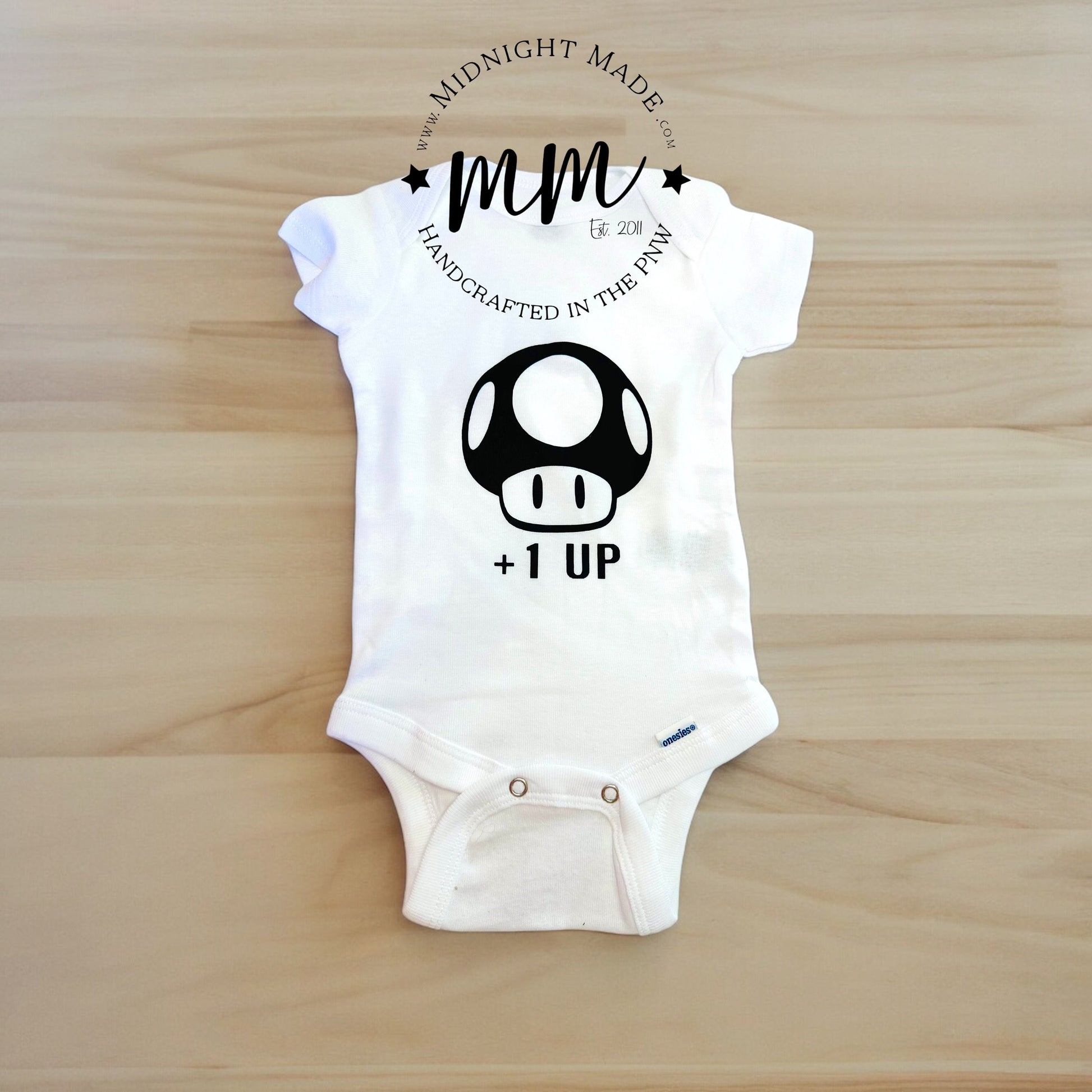 Mushroom, Super Mario Theme Baby Bodysuit, One Piece, One UP, Newborn Baby shower gift, nursery gift