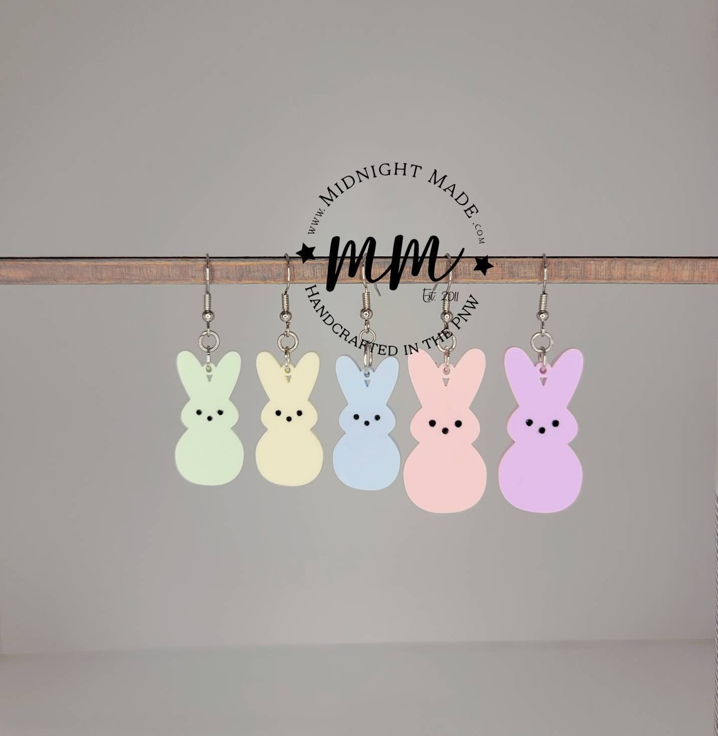 Peep Easter Earrings. Marshmallow bunny drop dangle earrings. Midnight Made